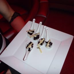 I first heard of the Supper Club from the Travel Channel, when they covered the original Amsterdam location. So when they finally opened one in LA, I knew I had to go experience it, especially when I scored a Living Social deal. For those of you who don't know, this is a dining experience where you sit comfortably on a huge mattress, enjoy a meal and some unexpected acts of the performers and be dazzled. At the reception area, we were offered a complimentary drink and hor d'oeuvre as we waited for the curtains to be pulled back. After a 15 min anticipation, some of the performers came out to invite us in. We had our assigned bed on the upper level. Though it's farther away from the center stage, we had a panoramic view of the entire room. The large room resembles a trendy lounge with cool music, a live DJ and modern decor. The dinner courses they served was surprisingly good. The meats were tender and not overcooked. After all of the courses were served, we found ourselves stuffed. Acts were timed to coincide with each course with lots of funny behavior from a flamboyant drag queen in between. Very talented this he/she was. The acts include acrobatics, mesmerizing dances and slight comedy, all in unique costumes and outfits. Drinks are not cheap. You can either order them from the servers or go straight to the bar. At times, the MC turned dinner into an interactive experience, getting some of the more plastered people to dance around and compete for free liquor. We were too busy enjoying the food. To pay full price will not be a cheap evening, but this is something to be experienced at least once in your life. Best to book it with some friends to make it more memorable. After 10, the place turns into a night club. Upon exiting, you'll see the typical Hollywood club crowd waiting to get in: Girls in tight short skirts and guys with dark shirts and heavy cologne. If you're planning to drive, spring for valet. Street parking is rare and a nightmare. If you arrive before the doors open, grab a drink at one of the many bars on the block to get your buzz on early.